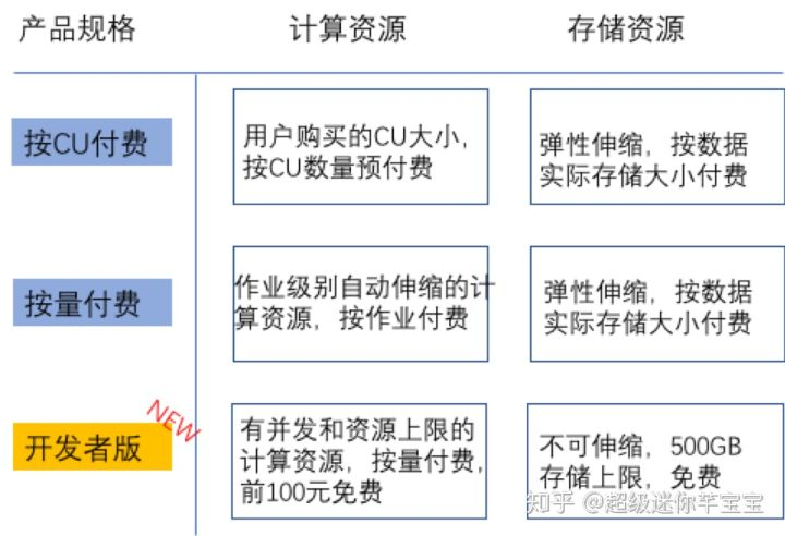 3月20号,阿里云正式对外宣布推出MaxCompute产品的新规格-开发者版。MaxCompute开发者版是阿里云大数据计算服务发布的开发者专属版本。区别于原有的按量付费、按CU预付费规格,开发者版是面向开发者群体的优惠套餐,为开发版项目免费提供500GB的存储空间和每月100元的免费计算费用。
