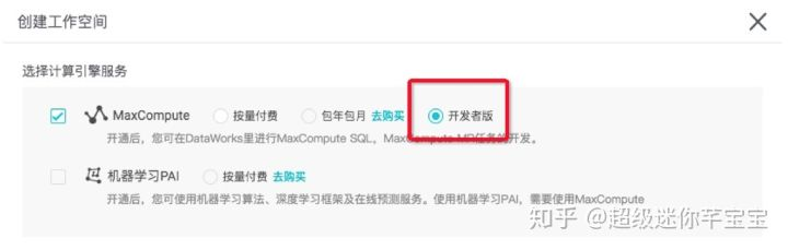 选择MaxCompute” 开发者版”计算引擎服务。