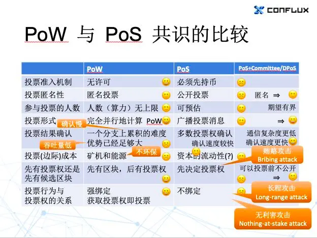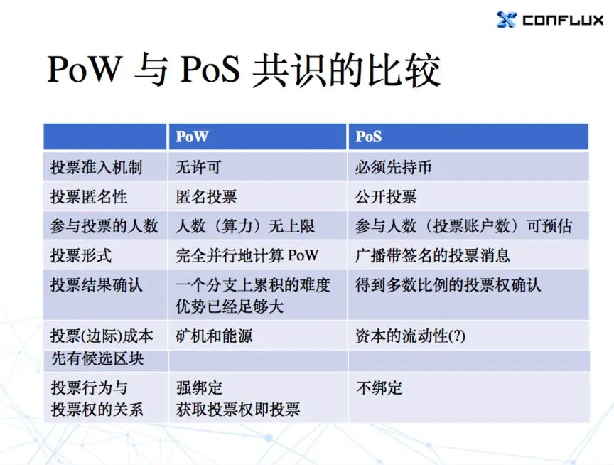 一个是安全性。我觉得最大的两个区别就是先有投票权,还是先有候选区块?投票行为和投票权利是不是绑定的?从这些角度上看,PoW 在安全性方面做得比较好。