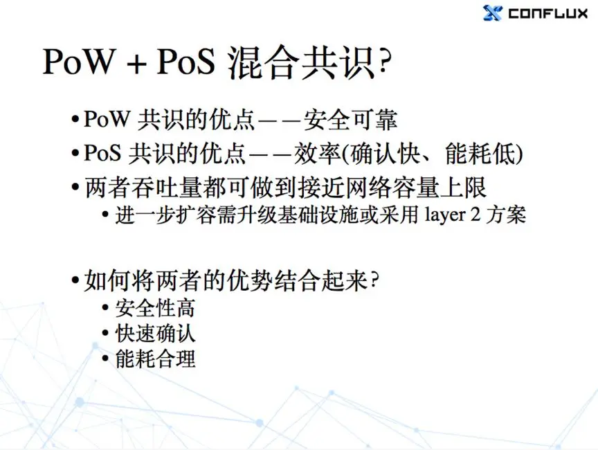 如果能把 PoW 和 PoS 的优势结合起来,就有可能做到一个安全性又高,确认又快,吞吐量大,而且能耗还比较合理的系统。目前为止我还没有看到特别好的解决方案,期待以后能出现这样一个完美的解决方案。