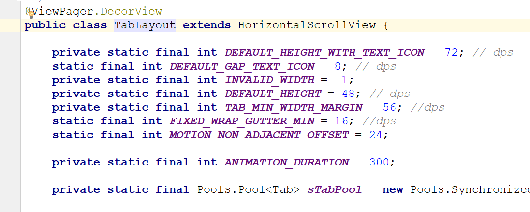 注意:我用的design support包版本是27.0.0,由于design support 28.0.0修改了TabLayout部分源码,增加了新功能,看到的源码可能跟我的不一样。