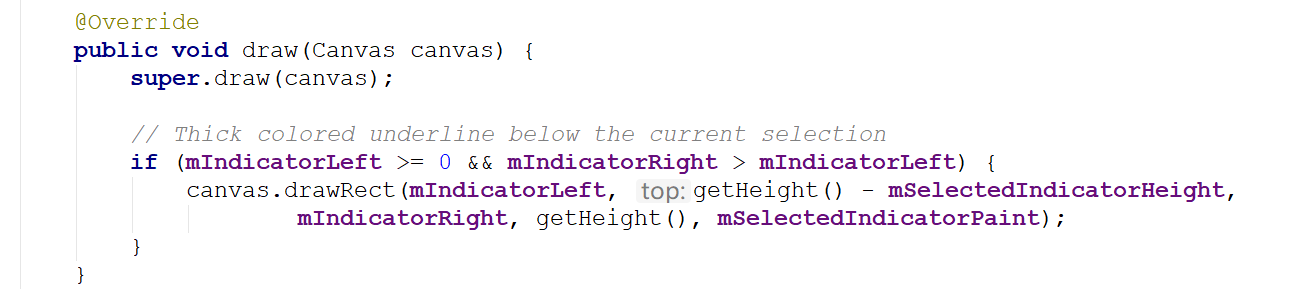 首先我们来搞清楚一个问题,那就是TabLayout是如何实现indicator的?要搞清楚这个问题,我们需要进入到TabLayout的源代码。