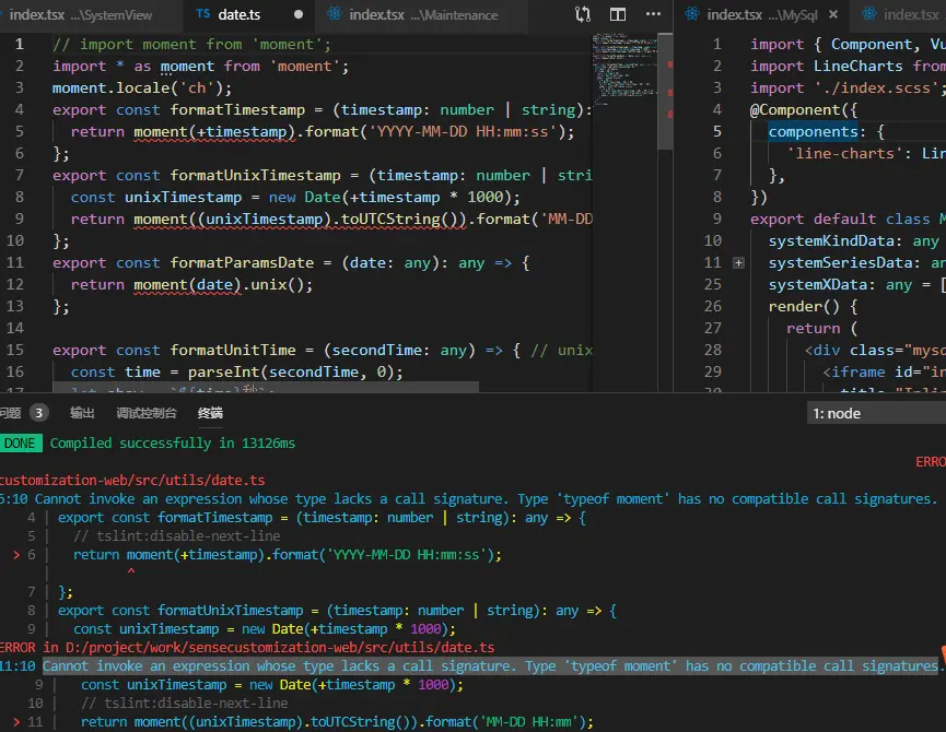invoke an expression whose type lacks a call signature. Type 'typeof moment 一心想润 2019-03-28 446 阅读1分钟 tslint报moment调用签名错误 moment官网是说2.13以上的版本已经支持了ts. 解决方案 npm install moment@latest 把import * as moment from 'moment' 改成 import moment from moment 效果如图: