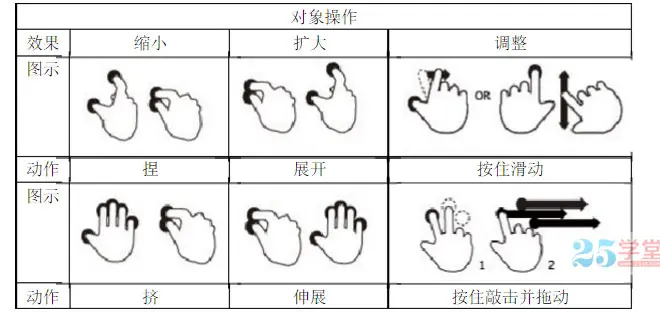 认识和分析一下常用手势的类型及功能: