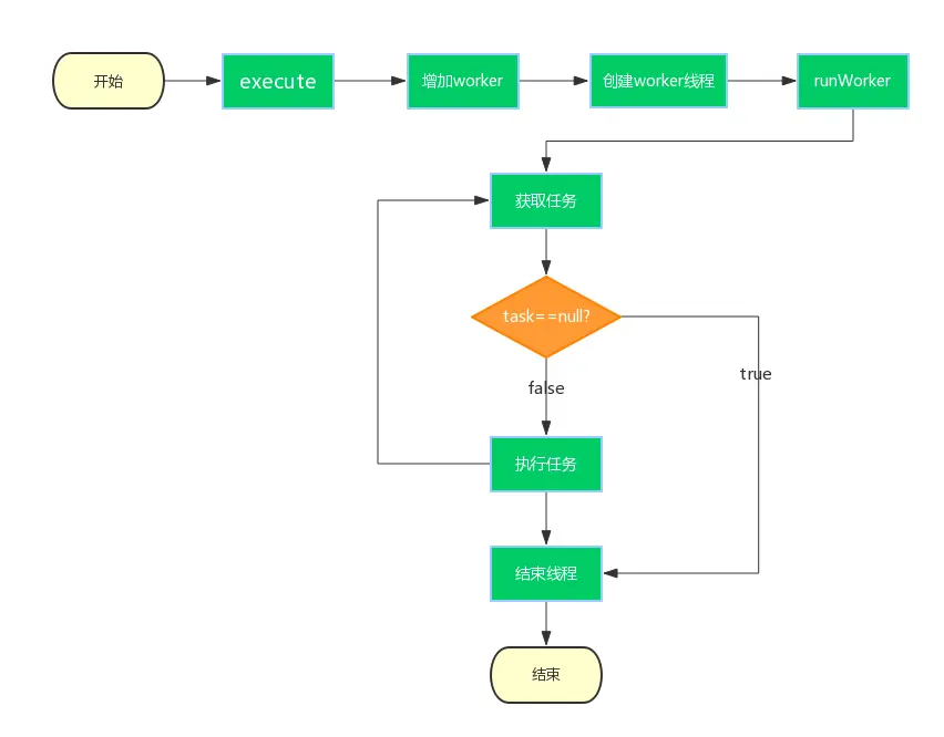 - while循环中,不断地通过getTask()方法从workerQueue中获取任务