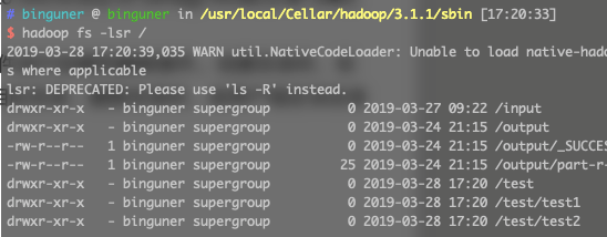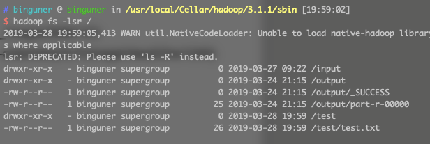 hadoop fs -put /User/Binguner/Desktop/test.txt /test