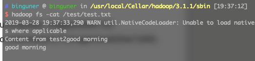 hadoop fs -appendToFile /User/Binguner/Desktop/test.txt /test/test.txt