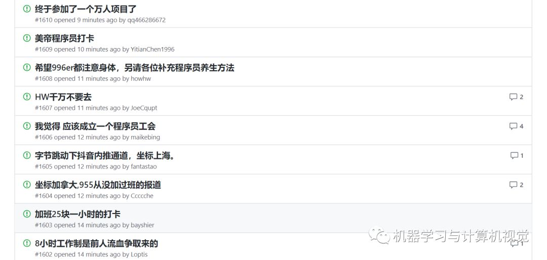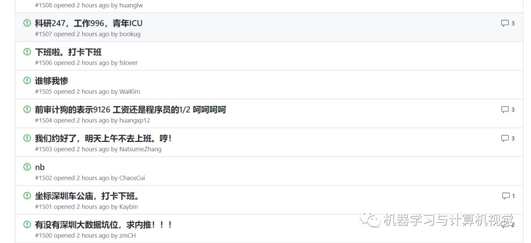 这些 Issue,既有留名参与过完星项目的,也有同样在抗议这个 996 工作制度的,当然也有让国内同胞们想打人的几个 Issue,来自加拿大和英国的同行们,赤裸裸地展示了我们都想过上的程序员生活!