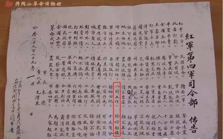 1929年,红四军向赣南发展,沿途布告明确提出:八时工作,恰好相称。