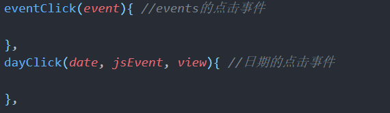 event-selected是事件的点击事件,day-click是当天日期的点击事件,两个事件的参数写在方法中了