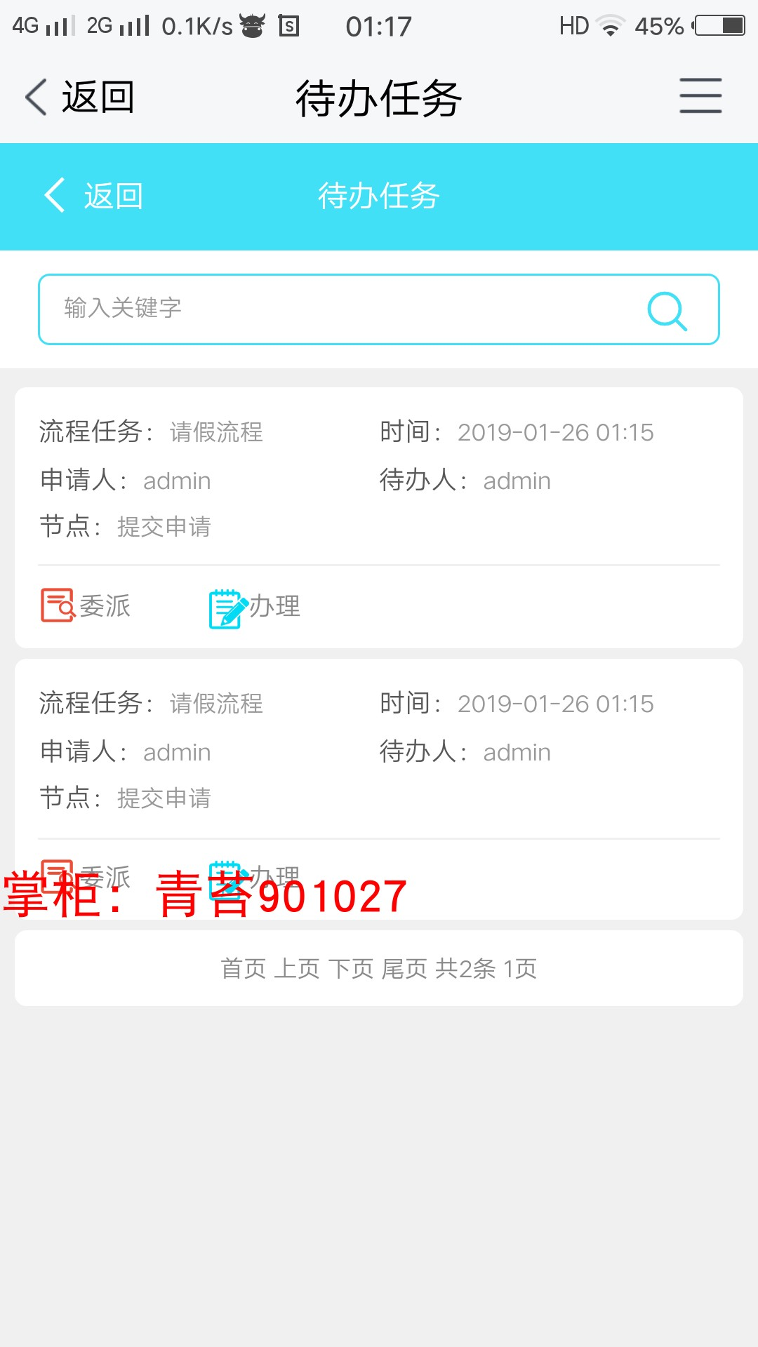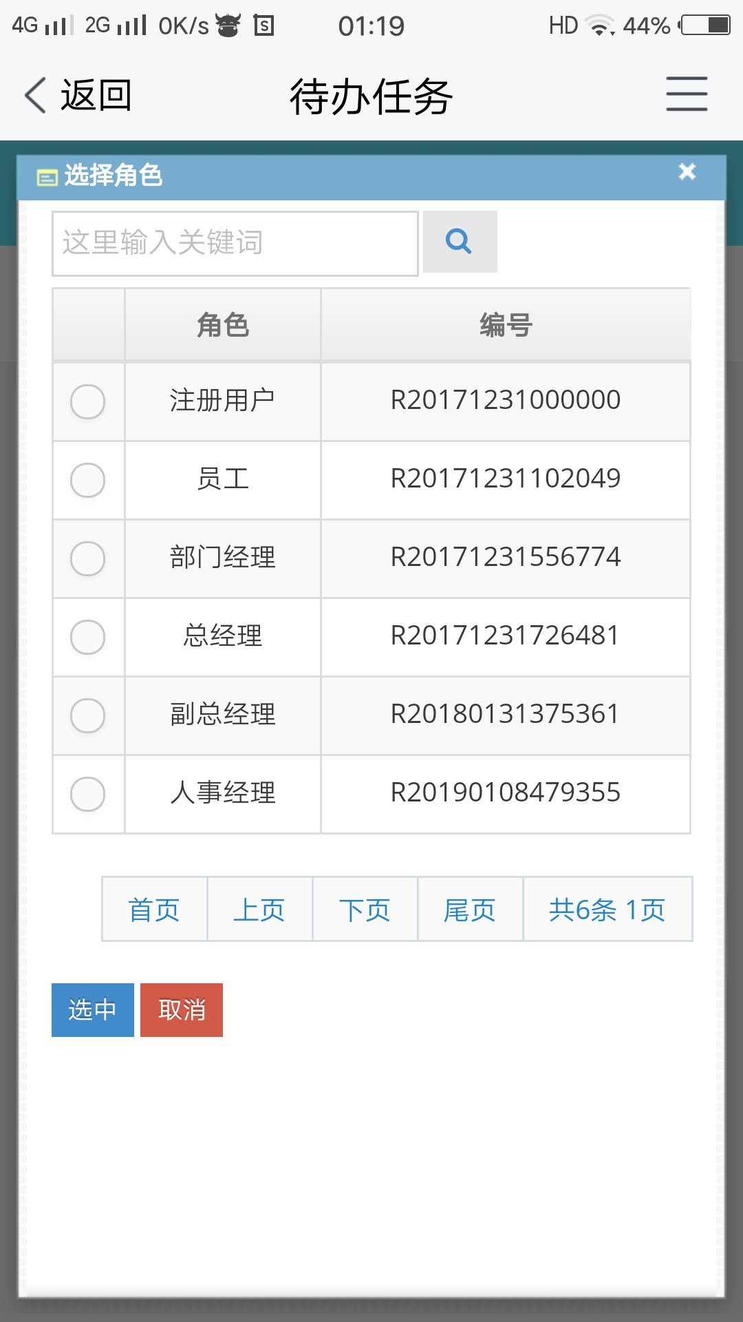 5.待办任务 :查看本人个人任务以及本角色下的任务、办理、驳回、作废、指派一下代理人