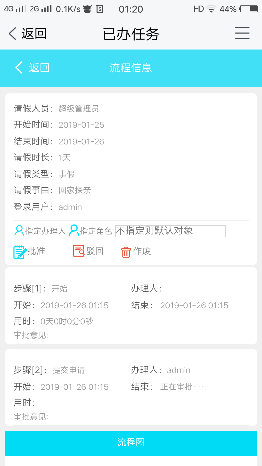 6.已办任务 :查看自己办理过的任务以及流程信息、流程图、流程状态(作废 驳回 正常完成)