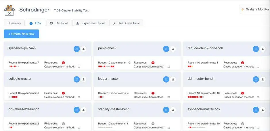**“薛定谔”是基于 Kubernetes 建立的一套自动化测试框架,提供各种 Chaos 能力,**比如干扰 CPU 、干扰内存、干扰网络、模拟网络分区、模拟磁盘损坏、模拟节点宕机等等一系列我们在生产环境中可能遇到的错误。同时也提供自动化的 Bench 测试来验证每次代码提交对数据库性能是提升还是下降的影响。此外测试平台还提供各类异常监控、告警以及自动输出测试报告等功能。