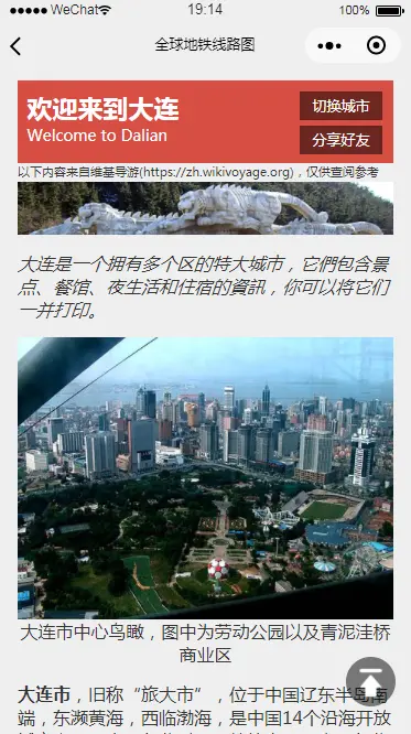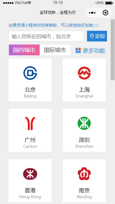 本文旨在以mpvue框架为基础,探讨地图类小程序的开发思路,权当分享和总结。 笔者利用mpvue + 腾讯地图的能力做了一个地铁路线规划的小程序,主要提供全球主要城市的地铁线网图及旅游介绍,其中国内城市支持查看地图和路线规划。虽然功能并不复杂,但也算一个实用工具了。话不多说,先体验一下: