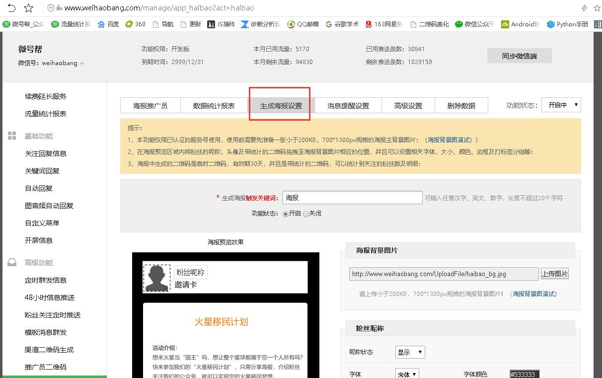 发送关键词到公众号生成带有粉丝头像昵称的海报二维码