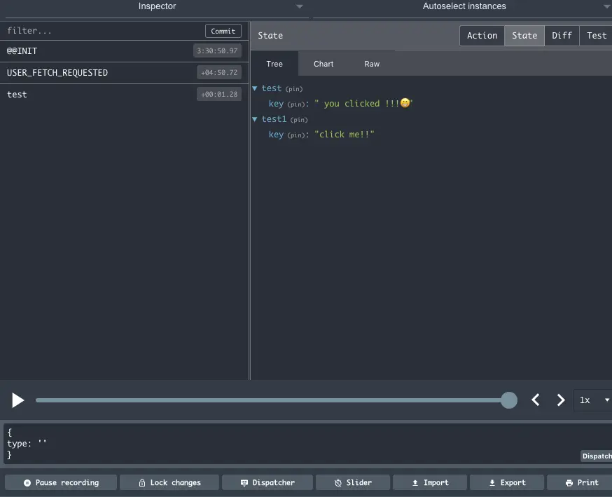 效果(只是简单执行一下action-》saga-》redux,和调试工具操作)