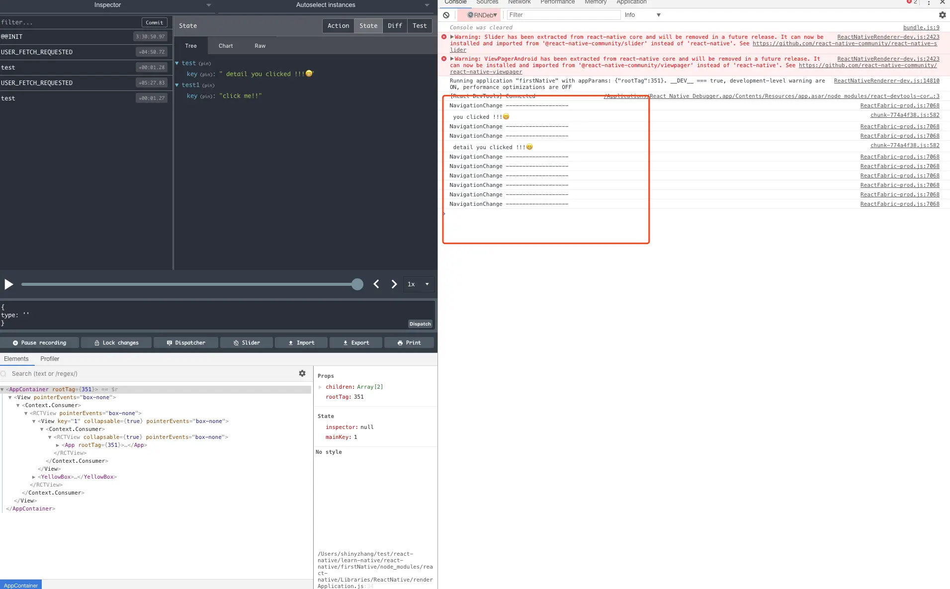 会发现图3和图4都是有相应的改变,这样是不是就符合咱们大家平常的开发了对于store的变化一目了然。接下来看看 console和elements,以及其他的调试看图