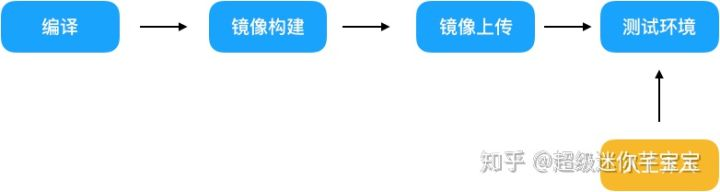 为了能够让开发者能够更快的将修改的代码部署到集群测试环境中,一般来说我们会引入持续交付流水线,将代码的编译,镜像的打包上传以及部署通过自动化的方式来解决。如下所示: