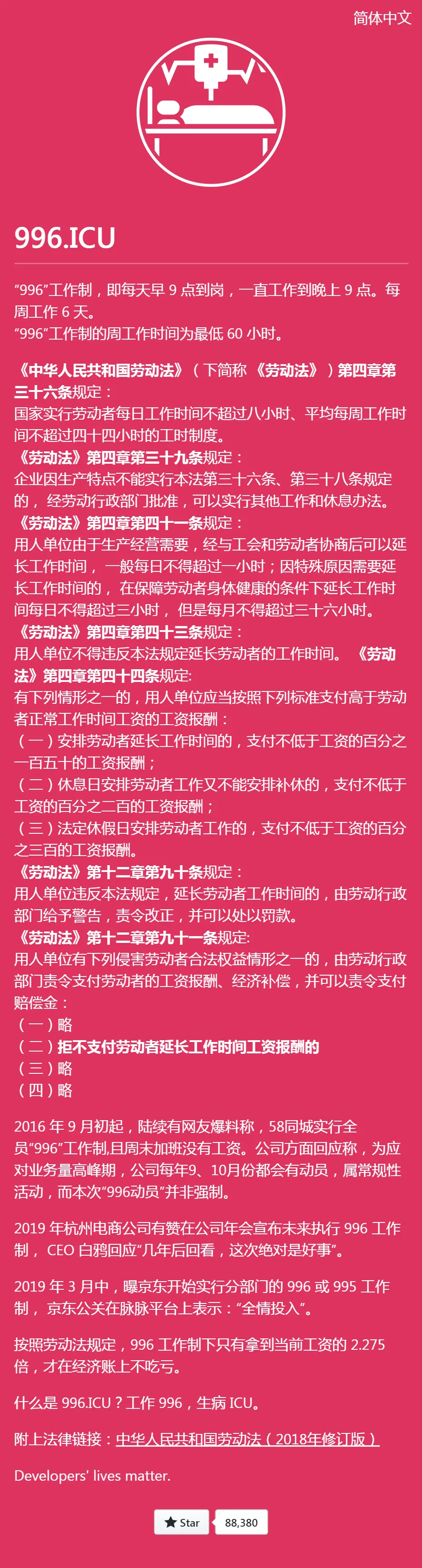 要说这几天,GitHub上star涨得最快的项目莫过于996.ICU了