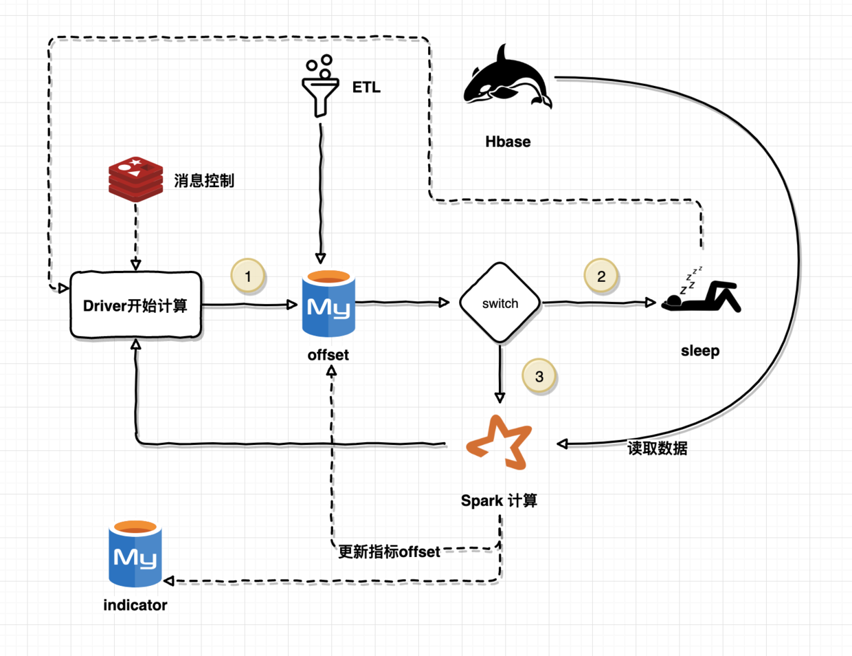 Switch 处是判断 loghub 的时间距离我们上次计算的指标时间是否相差足够时间,一般定义为3分钟时间之后,因为 loghub 的时间会有少量的波动情况