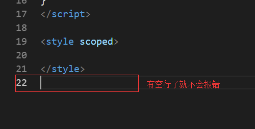 在编译vue是报错,排查后是,在.vue文件中</style>后加入空行后就能够解决了。