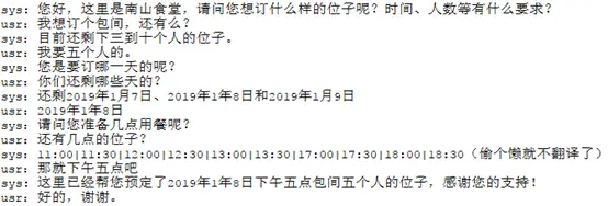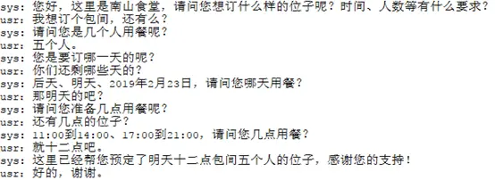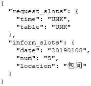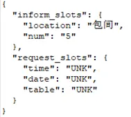 另外,在训练强化学习的过程中,实际上并不需要用到SLU和NLG,在Agent和User Simulator之间只需要通过结构化的数据进行交流,而不需要转换成自然语言,比如: