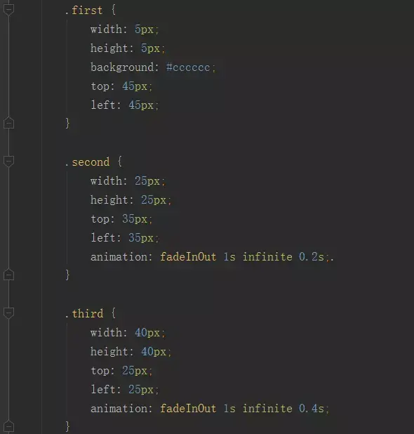 另外一种是把这个图标切分成三块,通过布局调整每个小图标的间距,然后通过js去控制每个小图标的出现顺序以及时间,这种方法的好处就是很灵活,而且代码编写起来也比较直观。