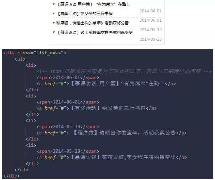 - 解决方案:日期 标签放在标题 a 标签之前即可