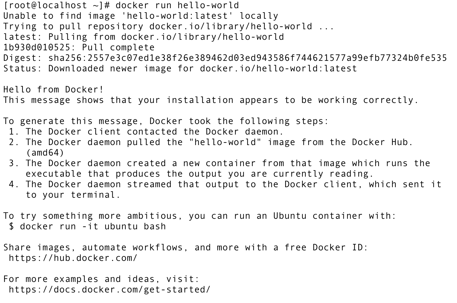 docker run hello-world(检验是否安装成功)