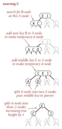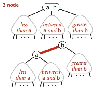 - 红色属性只能是左子节点(或左链接) 暂且不提红黑树的定义,先看下红黑树和2-3树的关系。