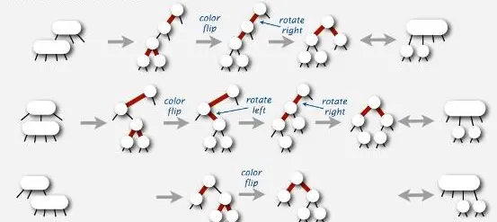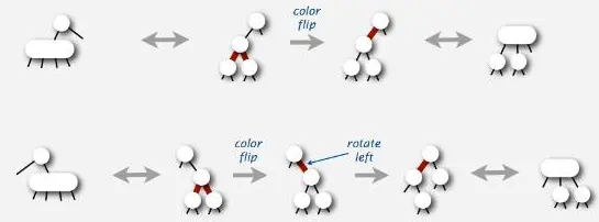 上一节图例中,红黑树使用了左旋转(rotate left)、右旋转(rotate right)和颜色反转(color flip)三种变化,我们一一解释: