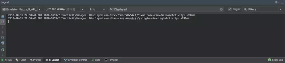 如上图一显示的Displayed Time,在Android 4.4(API级别19)及更高版本中,logcat包含一个名为Displayed的log信息,此值表示启动过程和完成在屏幕上绘制相应活动之间所经过的时间量。