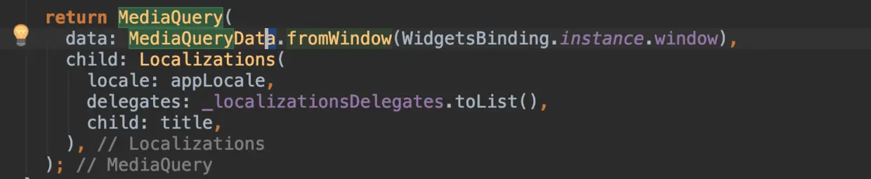 如果你看过 MaterialApp 的源码,你应该会看到它的内部是一个 WidgetsApp ,而 WidgetsApp 内有一个 MediaQuery,熟悉它的朋友知道我们可以通过 MediaQuery.of(context).size 去获取屏幕大小。