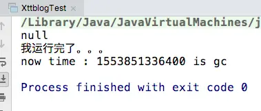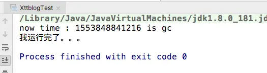 运行完成后,控制台直接打印“我运行完了。。。”。XttblogReference 中重写的 finalize 方法并没有执行。这说明没有进行回收。结果结果如下: