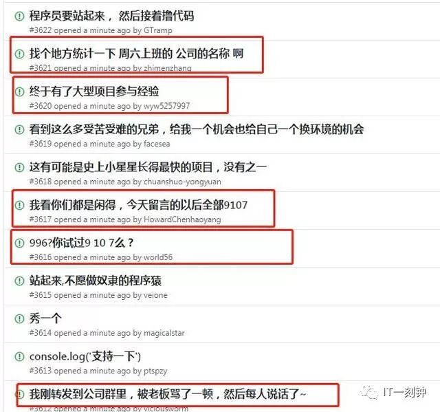 他们打出了“工作996,生病ICU;加班不规范,亲人两行泪。”的口号,控诉了诸多强制加班的互联网公司。惨遭鱼肉的程序员们多年以来被积压的怨念终于爆发了,不断有人在给这个项目添料加火,有的科普劳动法,有的放国际歌,有的点名曝光实行996的企业,来表达自己的愤懑。
