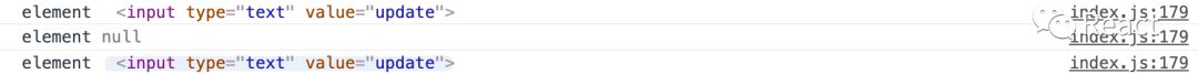 class TestComp extends React.Component { constructor(props) { super(props); this.textInput = null; // 初始化 flag 值为 init this.state = { flag: 'init' } this.focus = () => { if (this.textInput) { this.textInput.focus(); } } } componentDidMount() { this.focus(); // 当执行完 render 首次渲染之后,更新状态 flag 值 为 update this.setState({ flag: 'update' }); } render() { return ( <div> {/* 通过内联回调形式定义 ref */} <input type='text' value={this.state.flag} ref={(element) => { console.log('element', element); // 将传入的 element 输出控制台 this.textInput = element; }} /> </div> ) }}