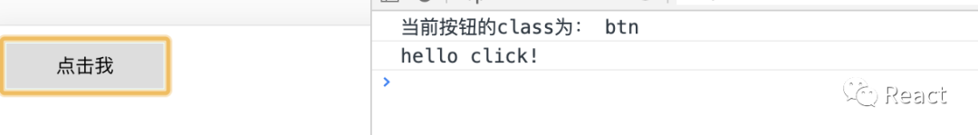 const ref = React.createRef();const BtnComp = React.forwardRef((props, ref) => { return ( <div> <button ref={ref} className='btn'> { props.children } </button> </div> )});class TestComp extends React.Component { clickEvent() { if (ref && ref.current) { ref.current.addEventListener('click', () => { console.log('hello click!') }); } } componentDidMount() { console.log('当前按钮的class为:', ref.current.className); // btn this.clickEvent(); // hello click! } render() { return ( <div> <BtnComp ref={ref}>点击我</BtnComp> </div> ); }}