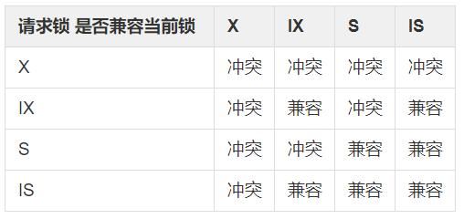 如果一个事务请求的锁模式与当前的锁兼容,InnoDB 就将请求的锁授予该事务;反之,如果两者不兼容,该事务就要等待锁释放。
