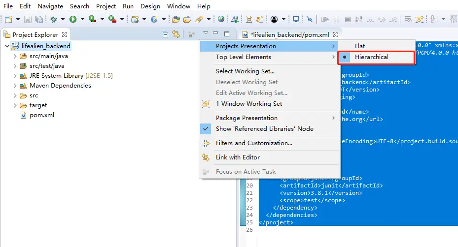 设置项目展示方式为分层模式
