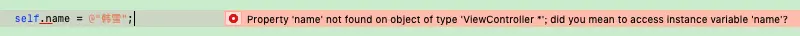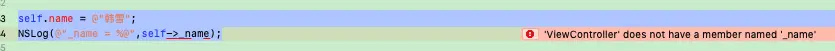 在这段代码里面只是声明了一个成员变量,并没有setter/getter方法。所以访问成员变量时,可以直接访问name,也可以像C++一样用self->name来访问。
