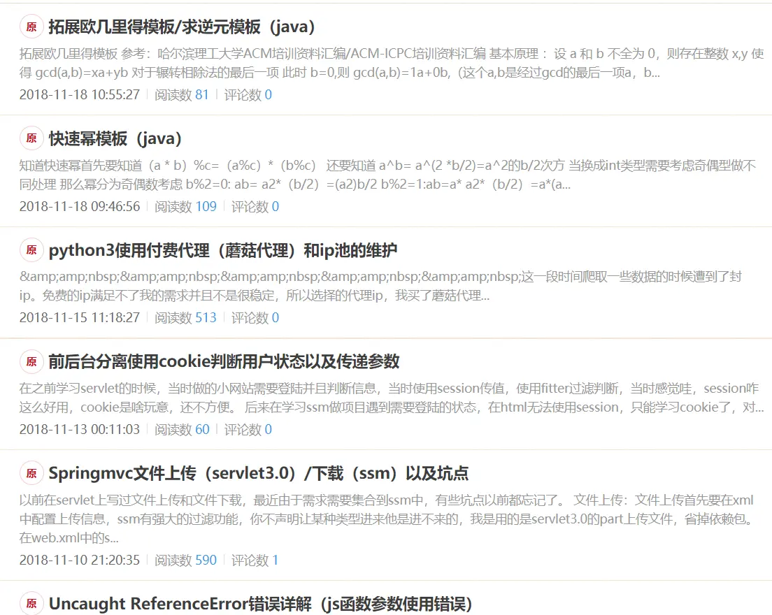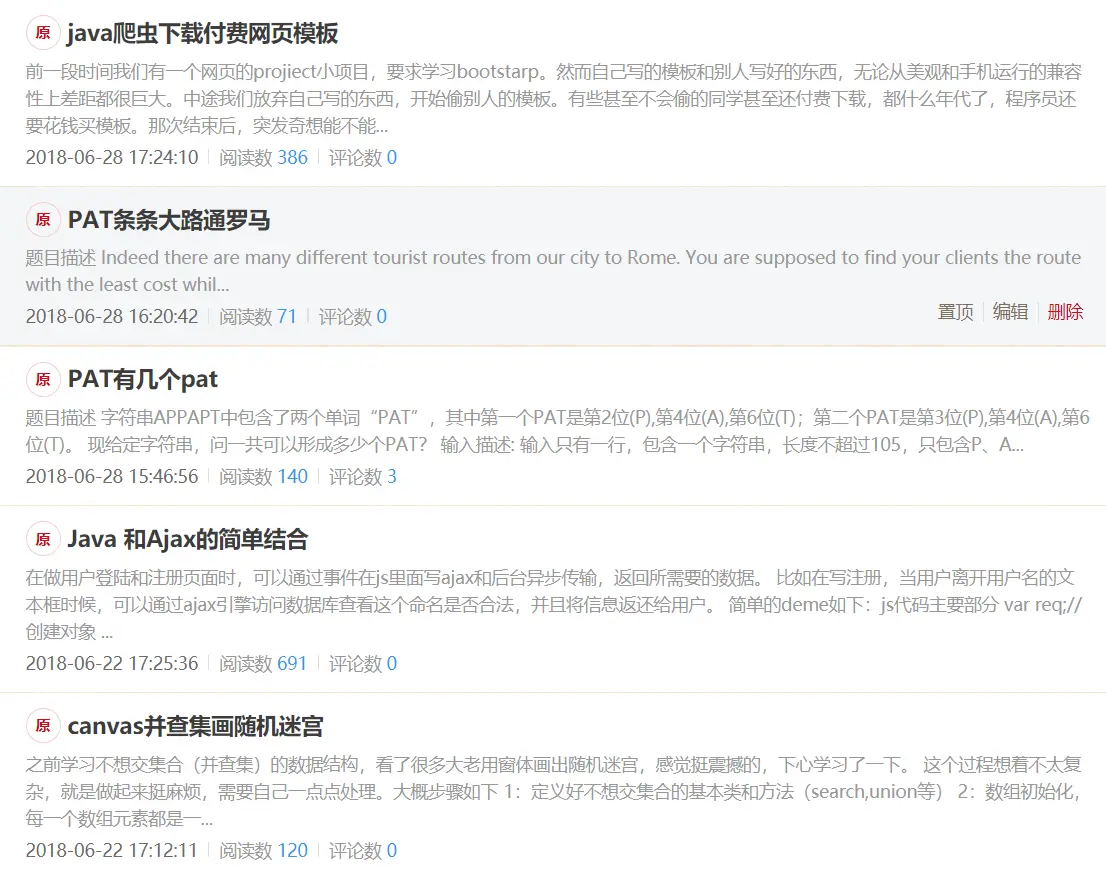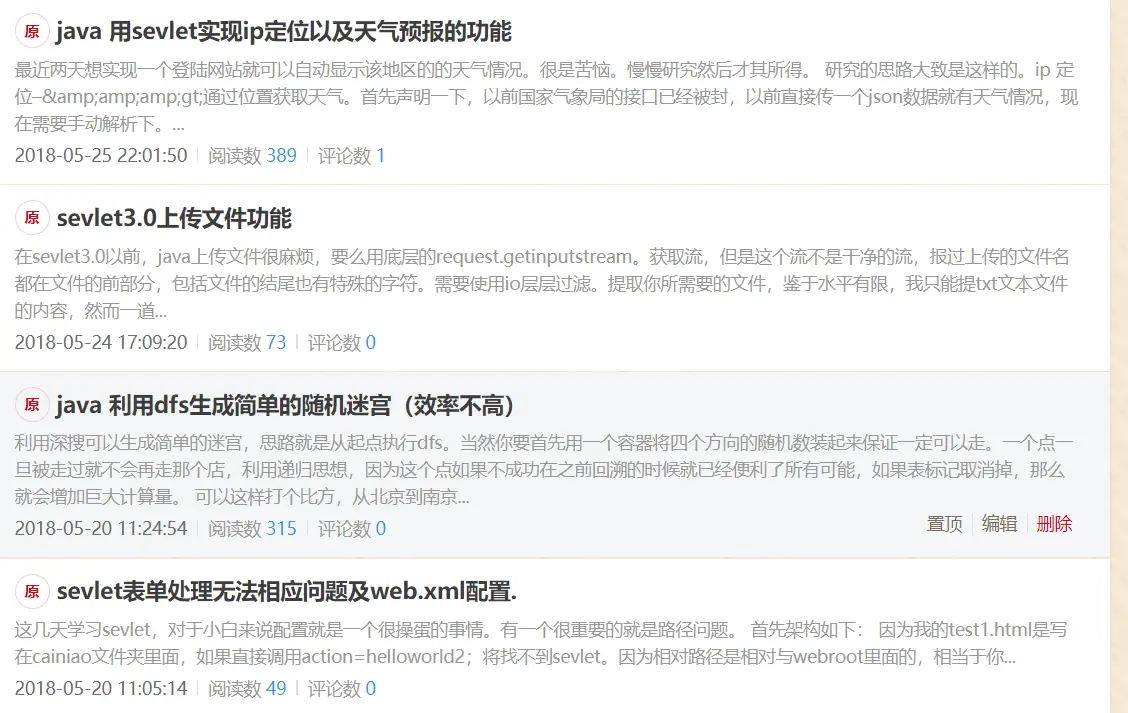还记得当时html课程最后大作业,我和一个同学合作,写一个个人网站,他负责前端。我们就想着把会的都做出来。当时爬虫爬了智联招聘用excel做了一些数据分析,有个新闻界面也是爬虫爬上去的。还有学习资源上传,下载。也研究servlet3.0研究了好久。解决各种乱码问题。编码问题。我们网页还准备了一个天气预报接口。所以又用ip地址分析的百度api和天气预报接口爬虫做了一个能在首页给出天气情况。我们还做了一个走迷宫的小游戏。当时是我负责算法部分(并查集)他负责走动。然后还用了原声ajax登陆,注册判断库里有没有。那个小站真的是到了极限哈哈。想想那段时间,因为要班级答辩赶得紧,进步的真的挺快的。