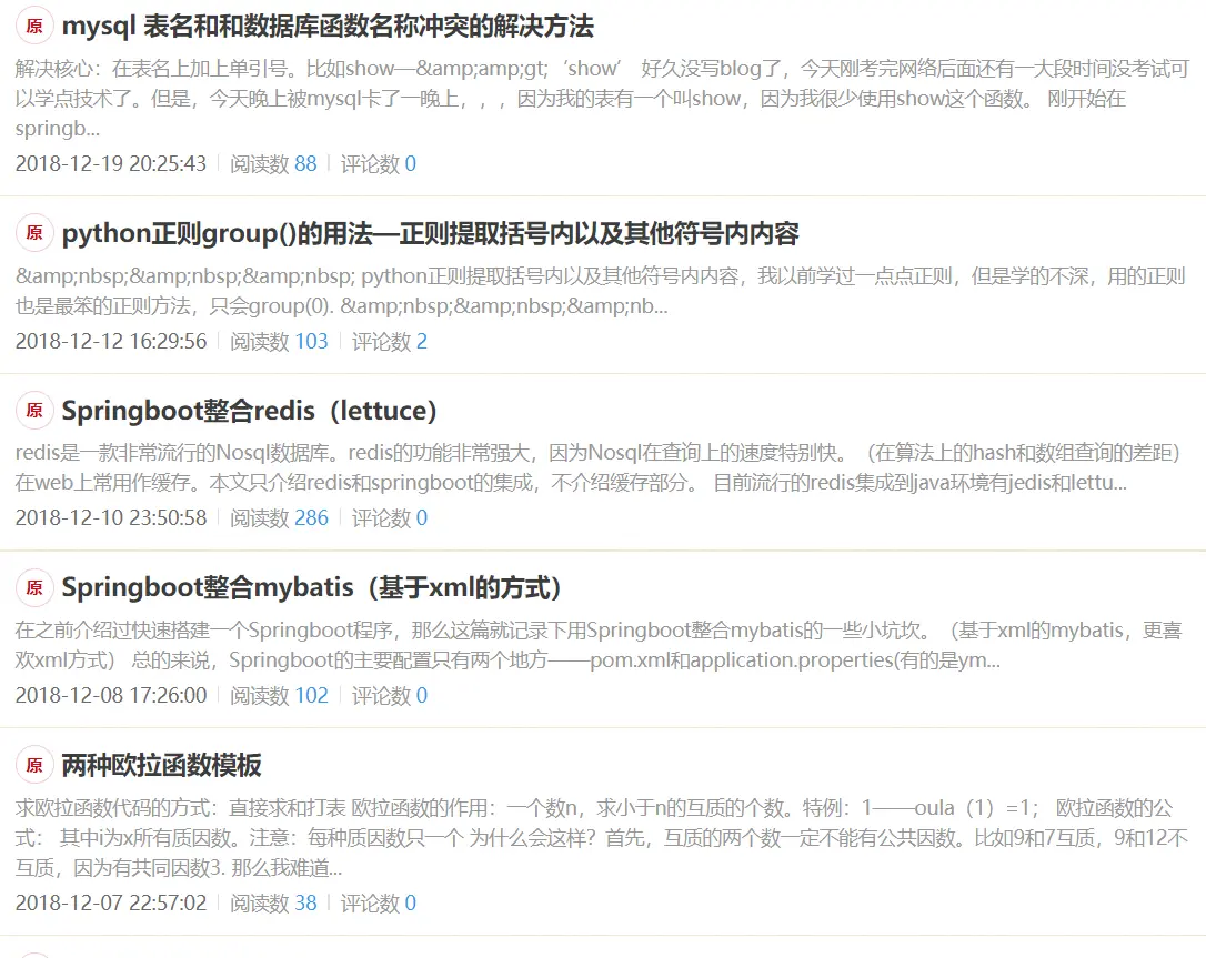 这个阶段对springboot感兴趣。开始广泛了解一些中间件。因为以前真的是不清楚有哪些东西。然够就是跟着群里大佬敲着springboot的demo。整合redis,尝试使用springboot。并了解一些nginx,MQ,shiro等常用中间件(虽然没用过但先知道有什么)。本创项目在这个阶段其实写的差不多了。用了springboot以前人家说ssm繁琐。我当时感觉复制黏贴一下还好。用了springboot之后。我才发现原来springboot那么方便,难怪会流行。其实这段时间对nlp和机器学习也敢兴趣,但是发现太难了。高数,线代,概率论都忘了真的很难学。哎。所以就没入门。简单了解下情况。
