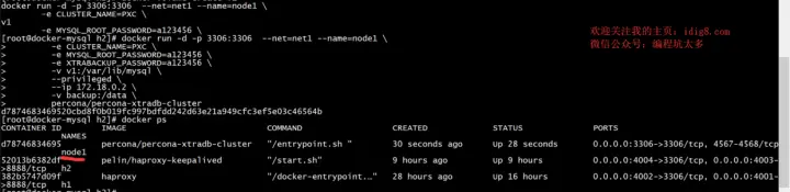 docker start node1PS:数据库的热备份,冷还原也讲完了,真心感觉也不是那么复杂。其实就是这样,但是在云平台越来越盛行的今天,基本上买个rdrs数据库这些功能都有了。了解下XtraBackup 这个工具确定很重要晚上很多的写成shell脚本的,更加方便了。