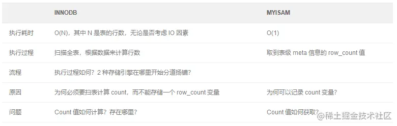Q:MyISAM 与 InnoDB 在 COUNT( * ) 操作的执行过程在哪里开始分道扬镳?