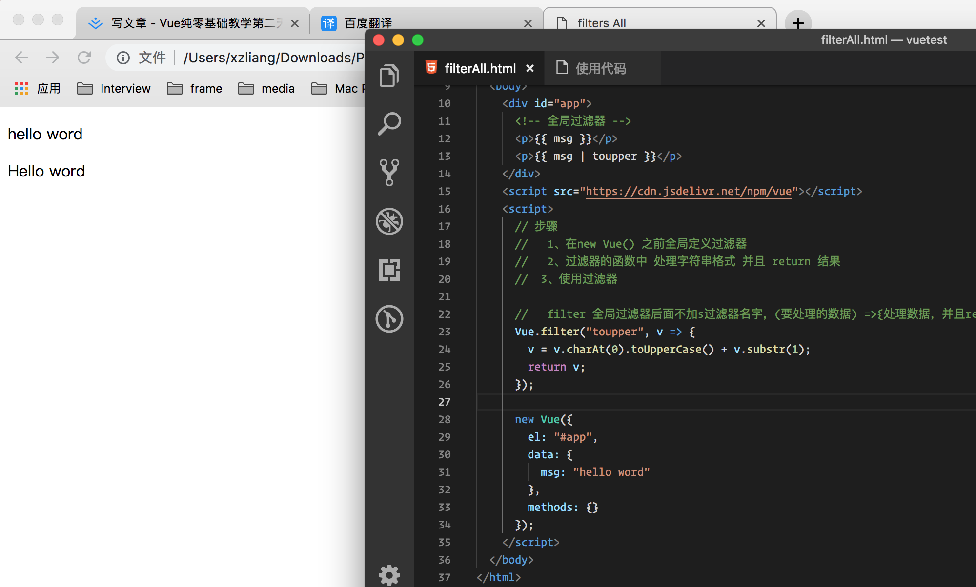 过滤器 两类 一个是局部 一个是 全局过滤器是在vue 实例之前定义他是写在 new vue 之前