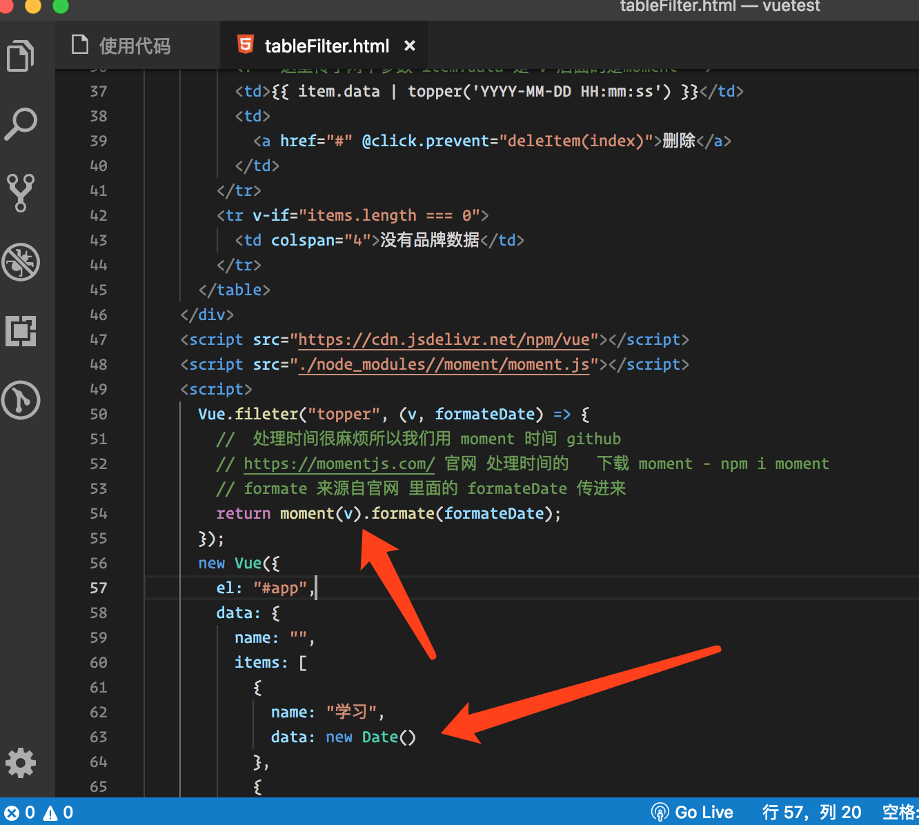 过滤器是用来处理 表格的文本格式 昨天的表格 代码 增加了 filter 与 moment 与moment 的使用