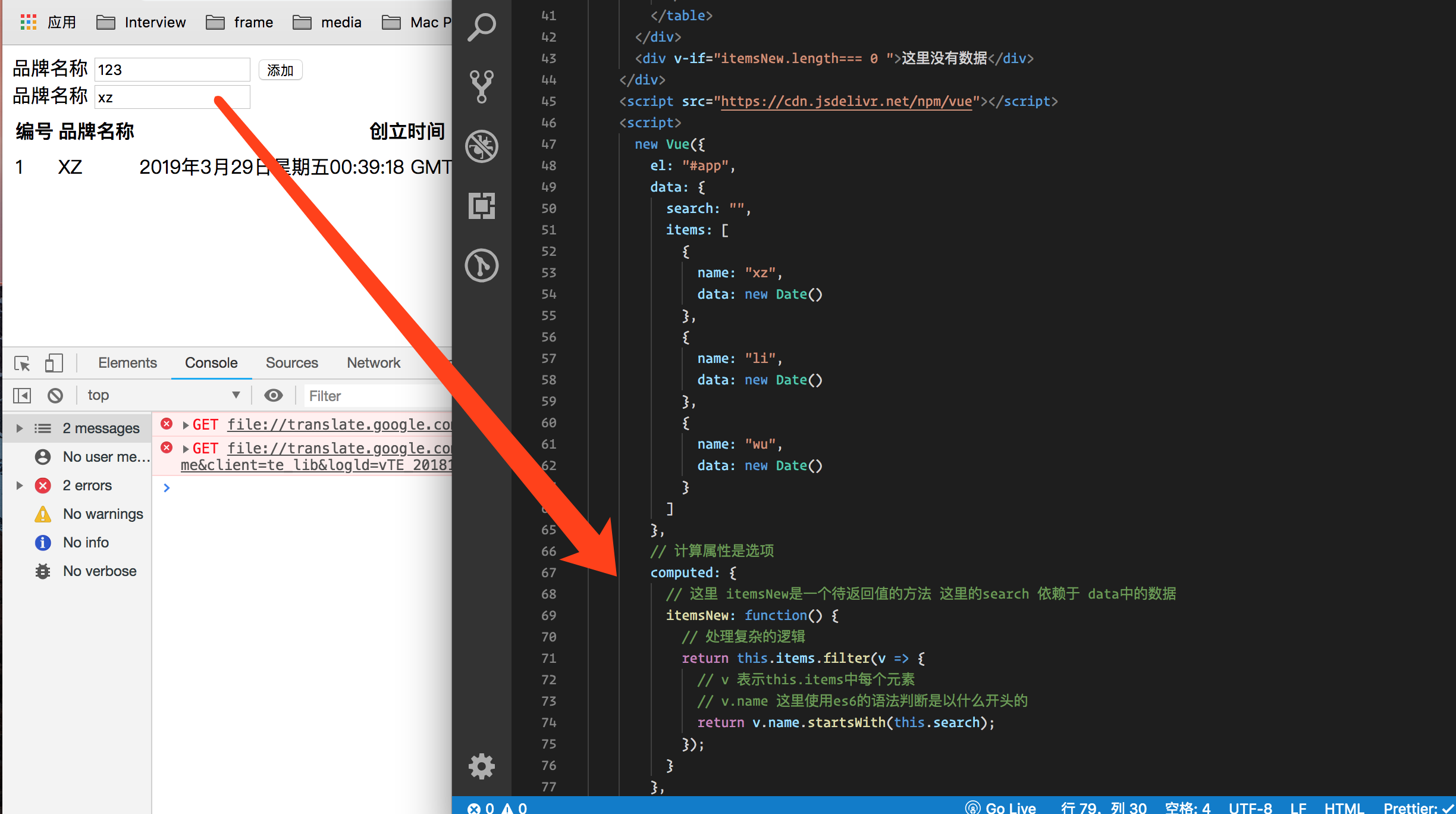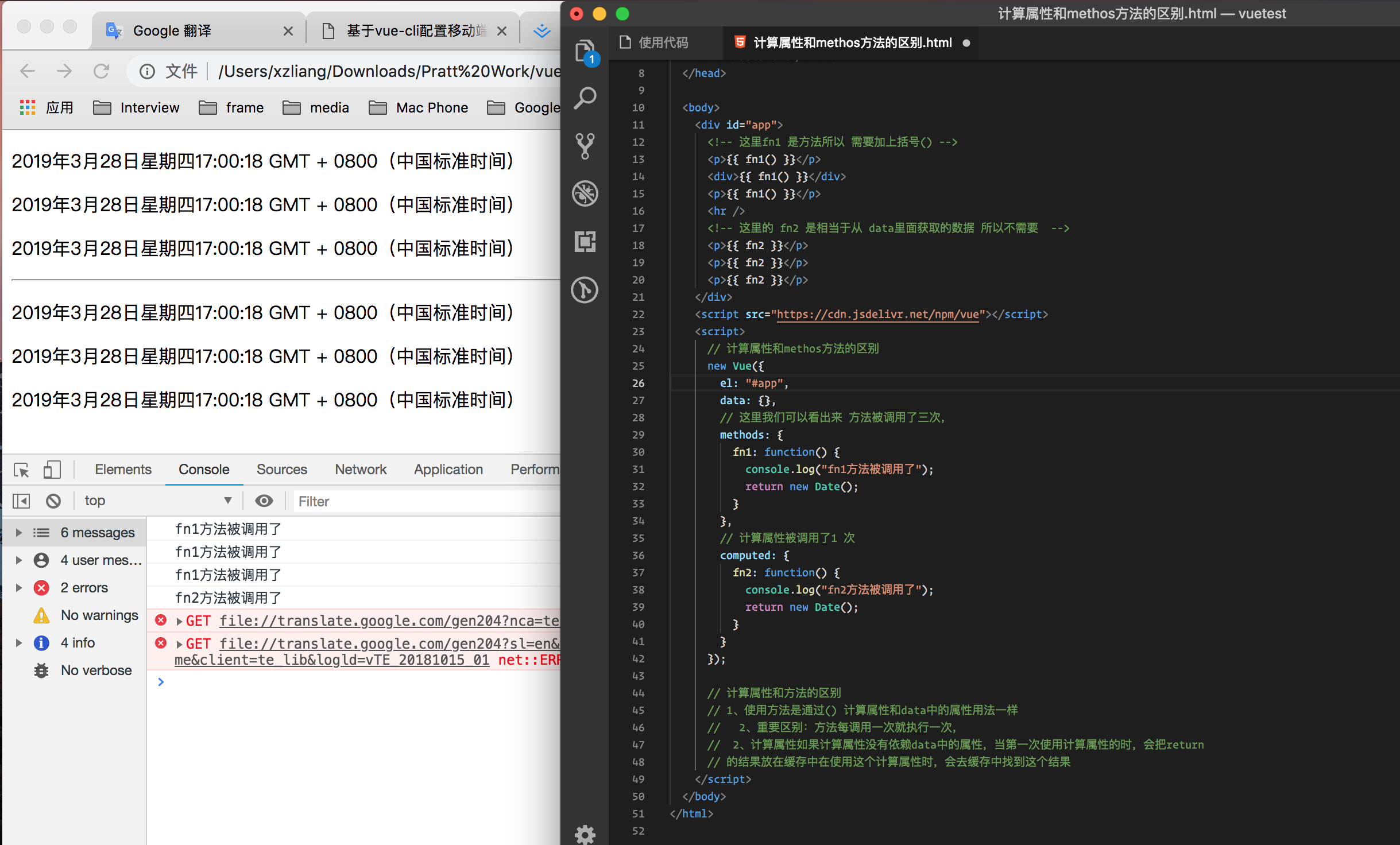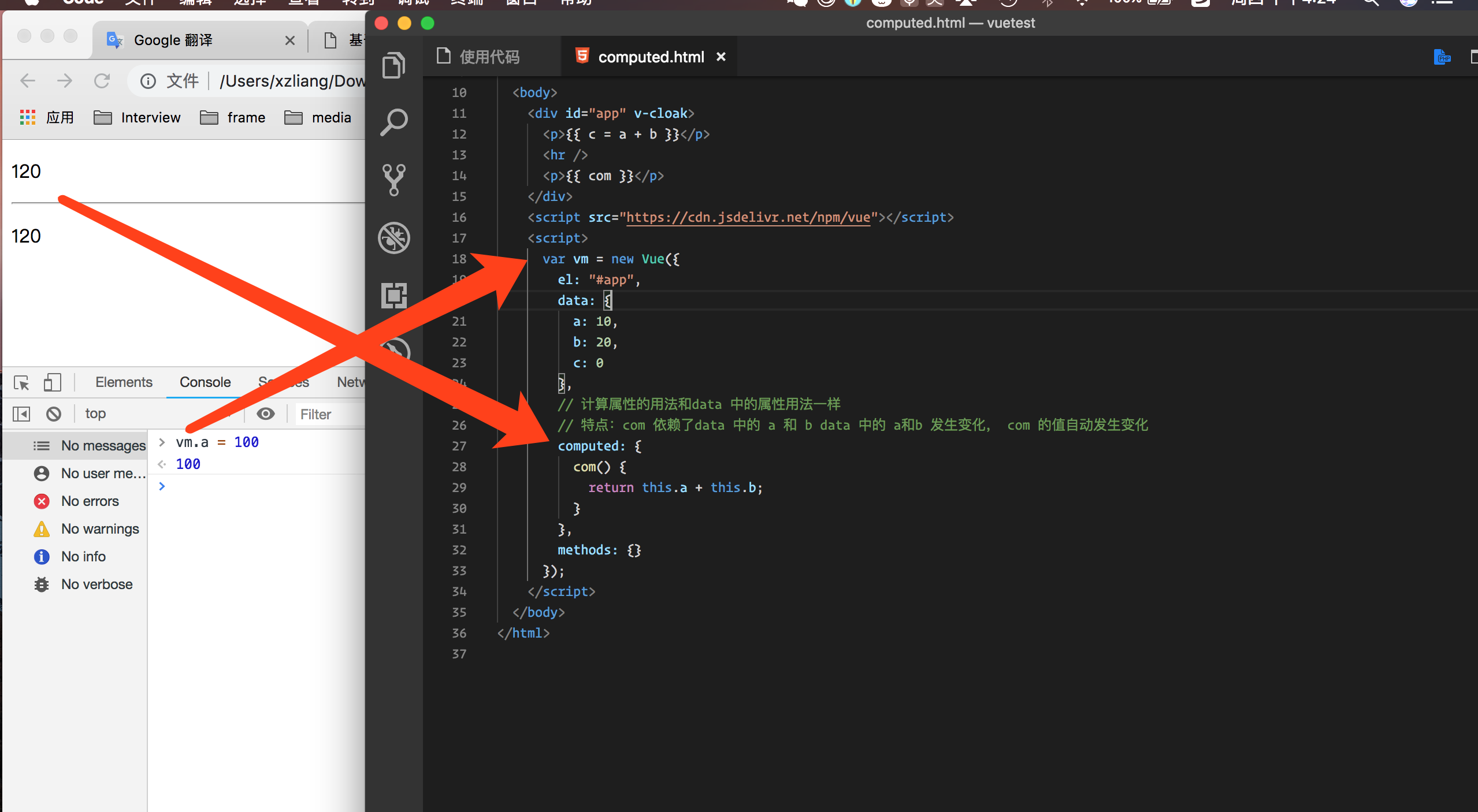 计算属性要写在 computed 里面 是带有 return 返回值的函数这里在计算属性中使用的com(){} 的是es6的方法