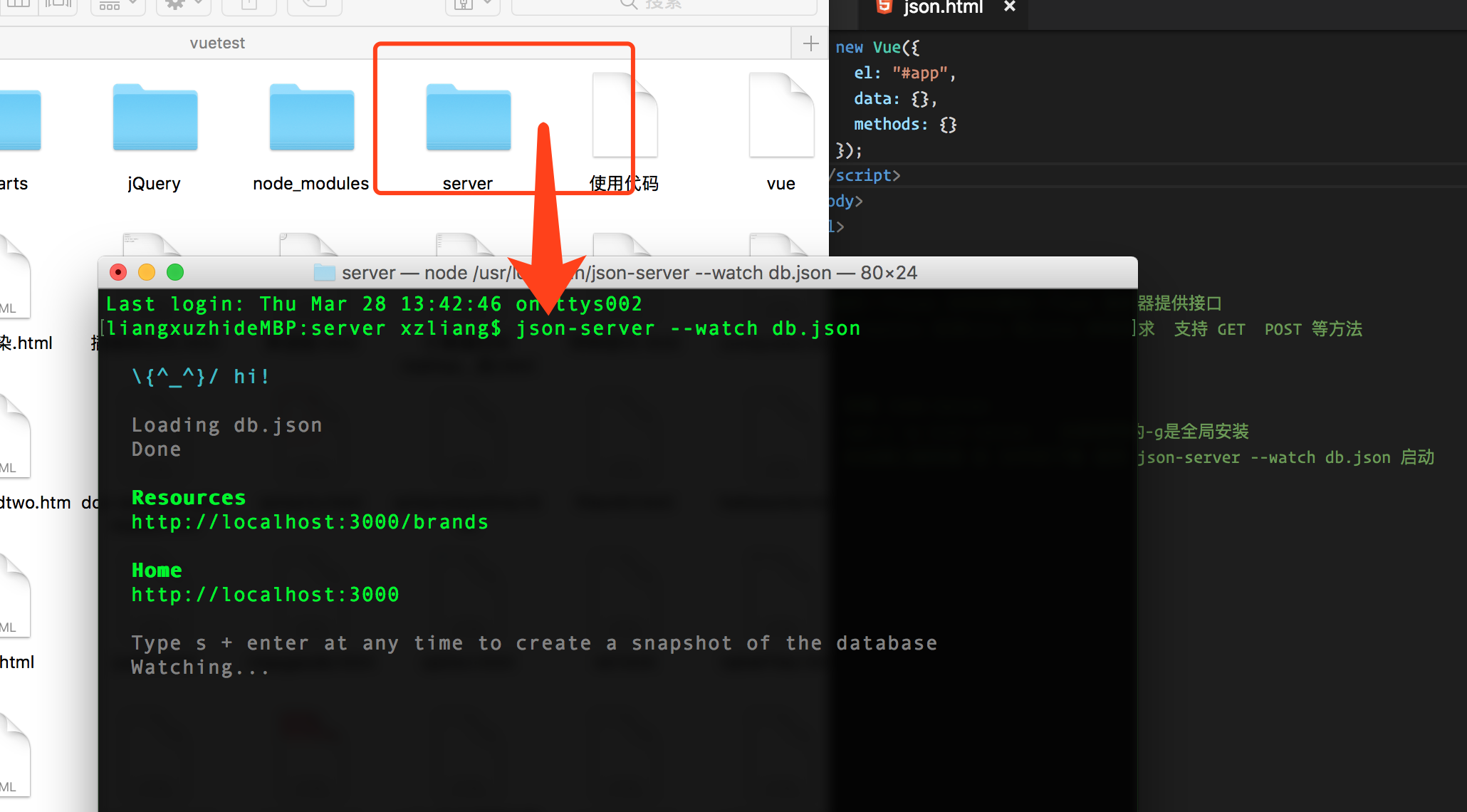 第二步走在存放当前文件夹里面创建一个 名为server的文件夹 存放json 文件