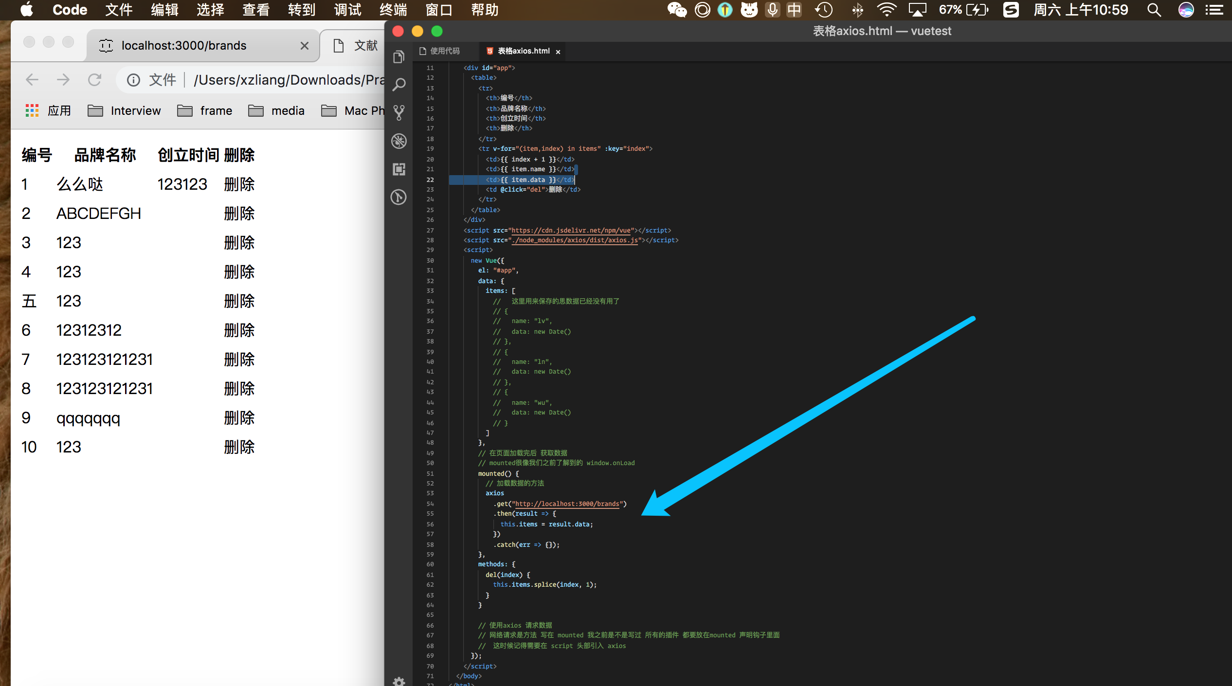 表格数据 添加 与 通过 axios 进行渲染 添加 删除