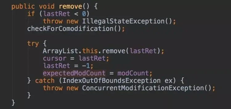 代码比较简单,modCount != expectedModCount的时候,就会抛出ConcurrentModificationException。